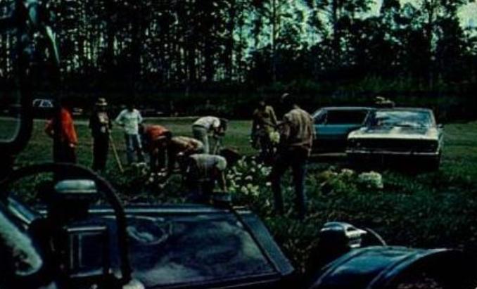 Esse clube de golfe situava-se as margens da via Dutra, onde cerca de trinta pessoas entre homens, mulheres e crianças vestidos a rigor passeavam alegremente. Distribuidos sobre o gramado estavam três calhambeques pretos e mais atrás um balão colorido.